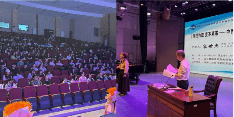 5月17日上午,中国音乐学院声乐歌剧系副主任容世杰教授,在学校音乐厅作《博观约取 变不离宗——中西方视野下的声乐教学反思》专题讲座,音乐舞蹈学院副院长吴扎拉·涛主持,师生代表参加。