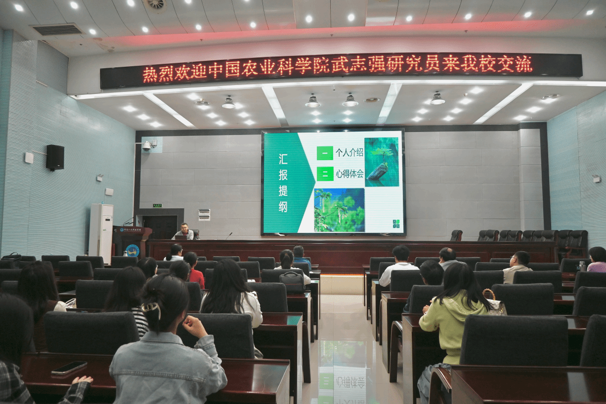 4月18日上午,中国农业科学院武志强研究员受邀在图书馆报告厅(二)以《国家自然科学基金申报个人体会》为题作报告。农业与生物技术学院部分教授、博士以及研究生和本科生参加。农业与技术学院副院长、娄底市农业科学研究所副所长康林峰教授主持。