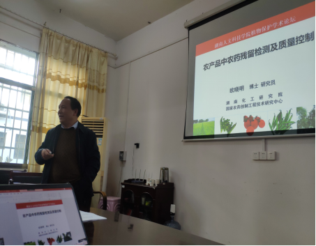 湖南化工研究院国家农药创制工程技术研究中心副主任欧晓明研究员以“农产品中农药残留检测及质量控制”为题作了主题学术报告,主要从农药与农药残留的含义、农药残留前处理和检测技术、农药残留实验质量控制等方面进行了报告,并对农药残留GLP实验室的申报和管理、平台运行做了交流分享。