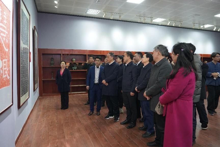 随后,刘铁铭、盛明科等校领导一起参观了书法博物馆。领导嘉宾细致观摩了汉砖、汉瓦铭文、墓志拓片、名人墨迹、碑刻实物等藏品,详细询问了博物馆规划使用情况,对博物馆的建设成果给予了高度评价,并表示今后将持续支持博物馆的建设。