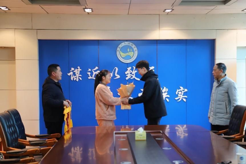 1月2日,体育学院2021级学生周健在孙水河救上一位70多岁的落水周奶奶。1月11日,家属一行五人带着鲜花和锦旗找到学校感谢救命之恩。