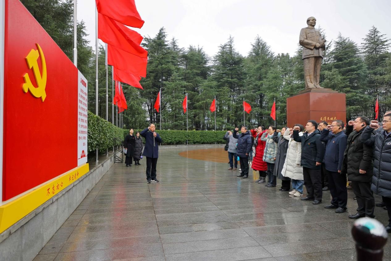 1月20日上午,全体人员在韶山毛泽东广场向毛主席铜像敬献花篮,并在党委书记刘铁铭带领下重温入党誓词。