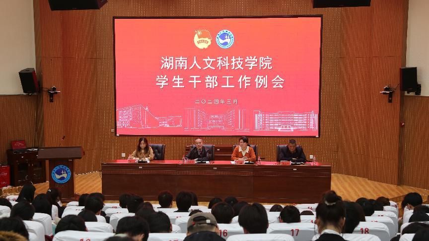 3月19日下午,学校2024年第一次学生干部工作例会在匠成楼报告厅召开。党委委员、副校长刘铁峰出席,校团委、学工处、保卫处及150余名院校两级学生干部代表参加。会议由校团委副书记刘佳主持。