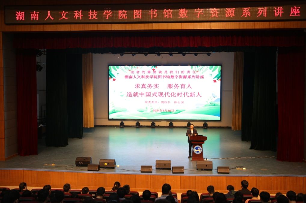 秉持“读者的需要就是我们的责任”的服务理念,在4月份读书活动月来临之际,图书馆就数字资源利用和纸本图书采购深入学校14个二级学院调研,针对各学院学科专业特点、学生的需求,今年将面向全校师生开展数字资源的系列宣讲。3月26日下午,举办了两场数字资源培训讲座。党委委员、副校长陈志国出席,材料与环境工程学院院长文瑾,图书馆党支部书记、馆长彭辉,副馆长申彦舒,部分老师以及来自材料与环境工程学院、美术与设计学院共计1000余名师生参加活动。