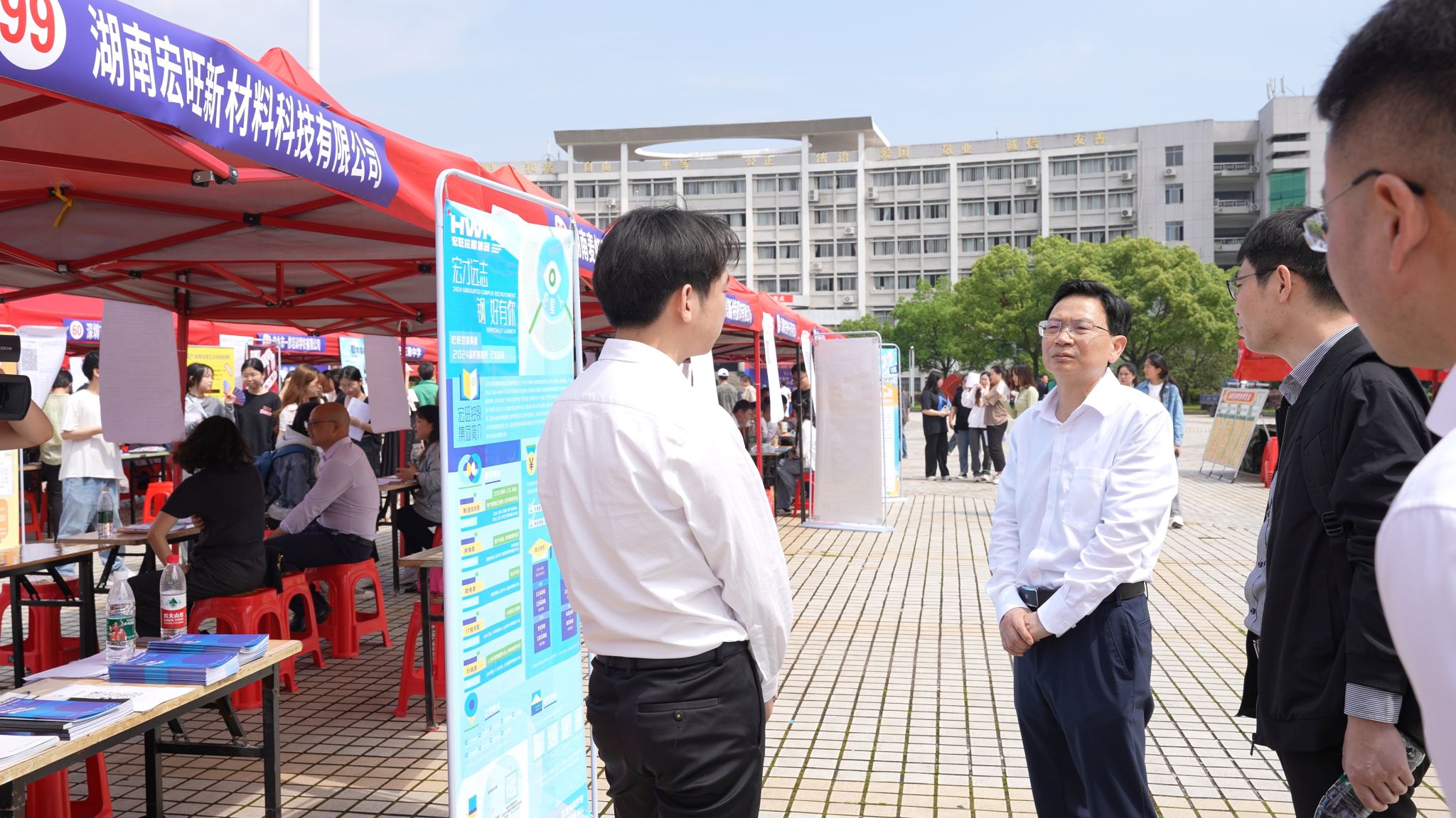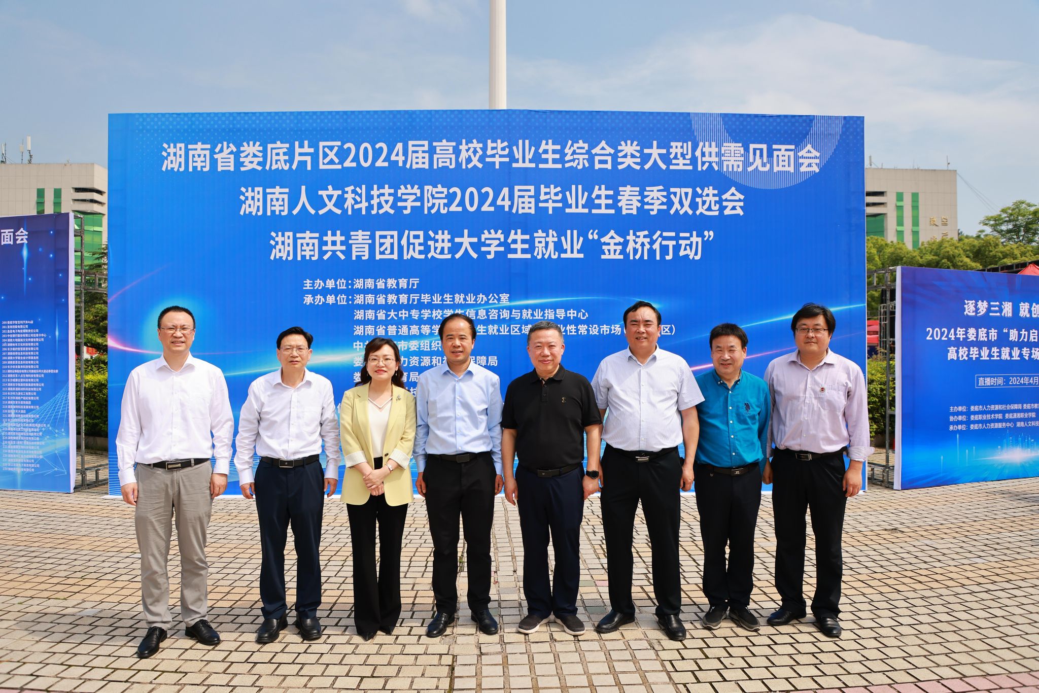 湖南省大中专学校学生信息咨询与就业指导中心四级调研员胡媛,娄底市人力资源与社会保障局党组书记、局长刘文波,学校党委副书记、校长盛明科,党委委员、副校长陈志国等领导现场指导工作,走访慰问用人单位代表,详细了解招聘情况,与毕业生亲切交流,勉励他们抢抓机遇、主动出击,尽早实现顺利就业。娄底市人力资源与社会保障局、市教育局相关负责人、学校招生就业处、二级学院负责人、就业专干参会,现场指导毕业生求职。