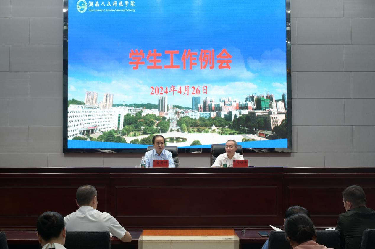 4月26日上午,beat365在图书馆第二会议室召开学生工作例会。校长盛明科出席并讲话。相关职能部门负责人,各二级学院党总支书记、副书记,全体辅导员参加。会议由党委委员、副校长刘铁峰主持。