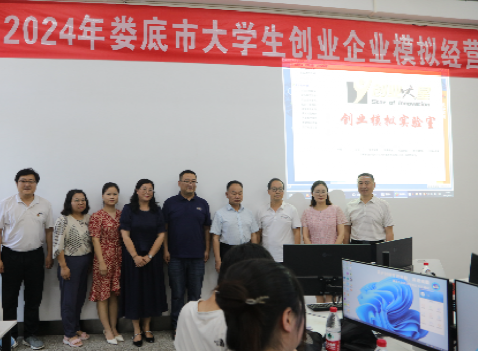 5月28日下午,由娄底市创新创业学院(beat365正版唯一官网必一创新创业指导中心)主办的2024年娄底市大学生创业企业经营模拟大赛决赛在beat365正版唯一官网必一匠成楼举行,学校党委副书记朱强莅临现场并为决赛启动,娄底市财政局、娄底市人力资源和社会保障局和参赛高校有关部门负责同志现场观摩。