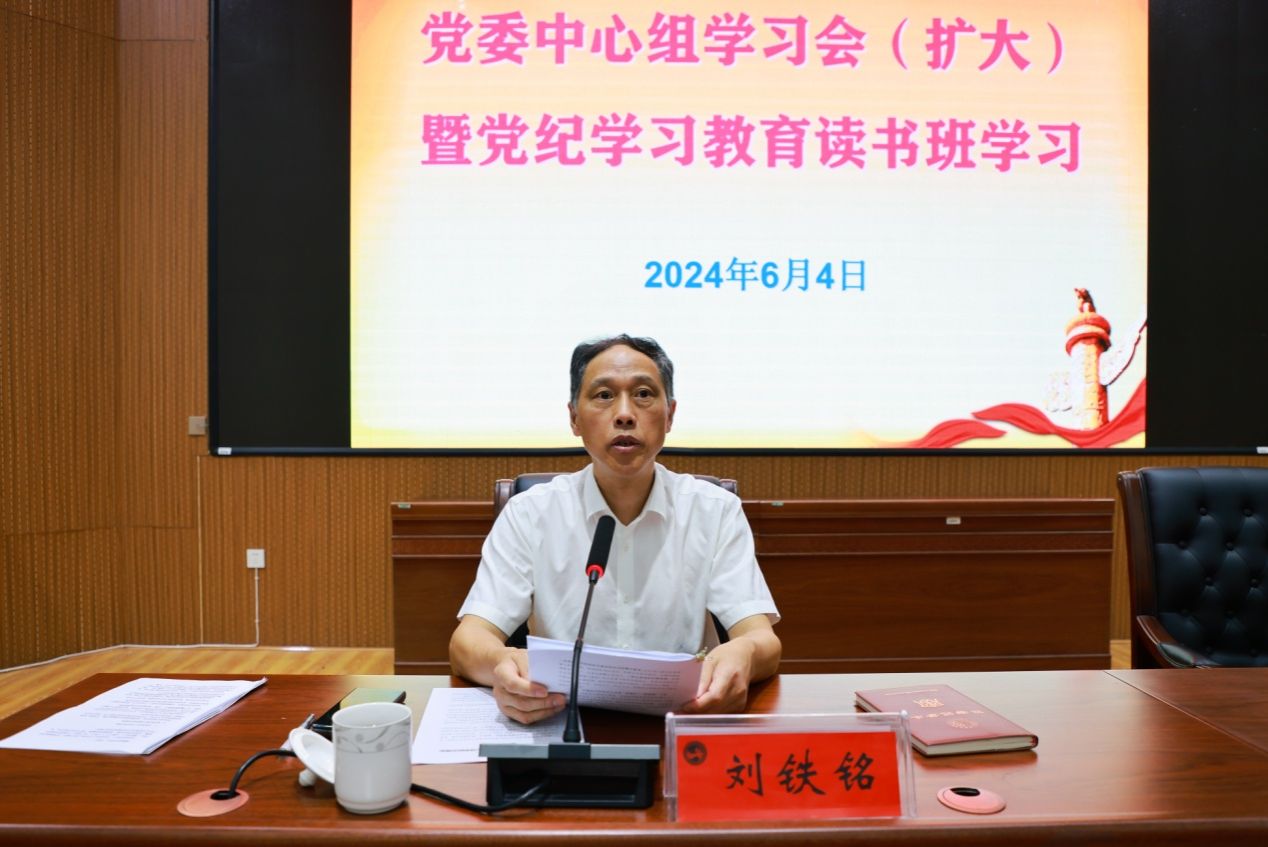 6月4日上午,学校在匠成楼报告厅召开党委中心组学习会(扩大)暨党纪学习教育读书班第三次集体学习,专题研讨“六大纪律”,在家校领导和中层正职领导干部参加。党委书记刘铁铭主持并讲话。