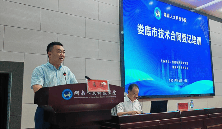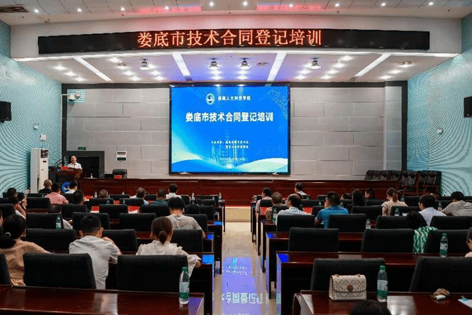 为进一步提升技术合同登记人员业务素质和服务能力,优化技术合同认定登记质量,促进科技成果转化优惠政策落实落地,6月19日,由娄底市科技局和beat365正版唯一官网必一共同主办的娄底市技术合同登记培训会议在beat365图书馆第二报告厅举行。会议由beat365党委副书记朱强主持,娄底市科技局党组书记、局长易俊,副局长康利民,湖南省技术产权交易中心研究员周利平出席会议。