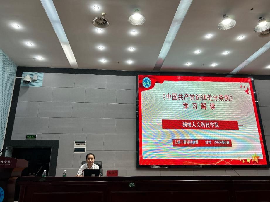 为深入学习贯彻习近平总书记关于党纪学习教育的重要讲话和重要指示精神,扎实推进党纪学习教育走深走实,6月25日下午,校党委副书记、校长盛明科为美术与设计学院、商学院全体师生党员讲授新修订的《中国共产党纪律处分条例》解读专题党课。