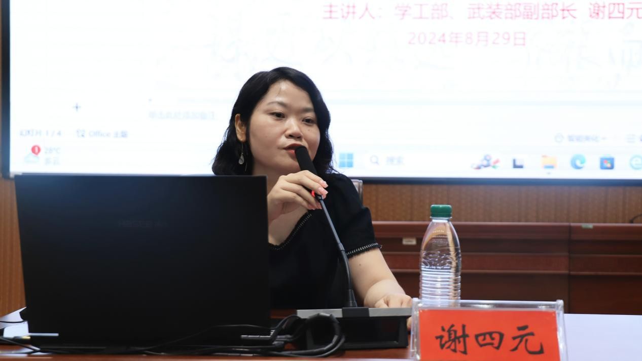 在培训过程中,学工部、武装部各科室负责人为近两年新入职的辅导员们详细解读了学生管理制度。信息学院党总支副书记朱舒腊、大学生心理健康教育与咨询中心主任聂恒、马克思主义学院学工办主任张得才分别结合自身的工作实际,分享了在学生管理、心理辅导、活动组织等方面的宝贵经验。