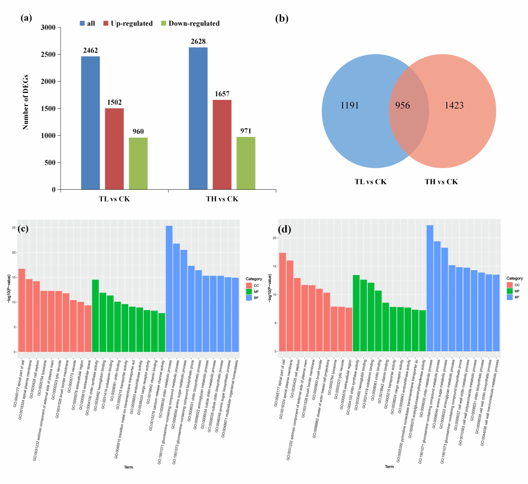图2 E. fetida体内差异表达基因的数量及排名前十的GO