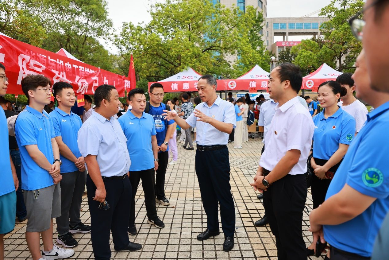 为确保开学迎新工作顺利、高效、有序进行,9月13日,党委书记刘铁铭,党委副书记、校长盛明科,党委委员、副校长刘铁峰到各迎新点检查指导迎新工作,看望前来报到的新生,并慰问参与迎新工作的师生志愿者。