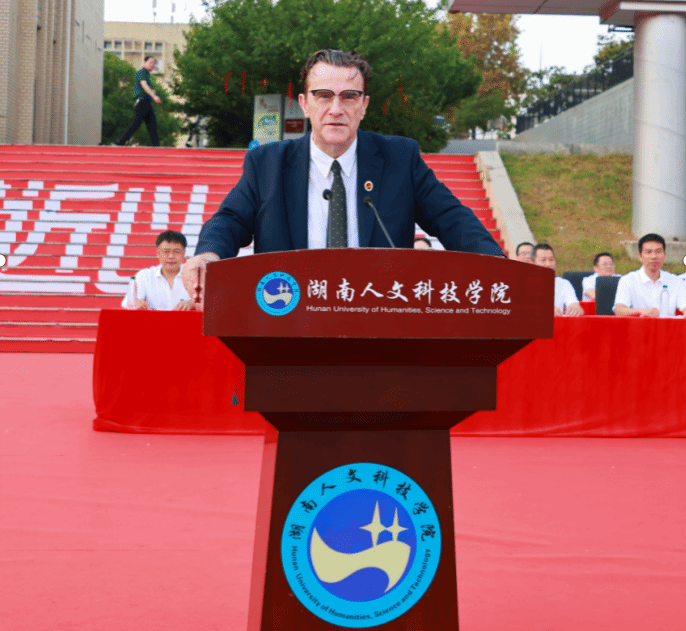 作为特邀嘉宾,约翰·斯特拉坎教授在发言中介绍了巴斯斯巴大学的教育理念和特色,回顾了与beat36510年的合作办学历程,达到了教育卓越和全球公民意识等目标。他寄语新生要以开放的心态汲取知识,积极拥抱每一个学习机会、个人成长机会和文化交流机会。