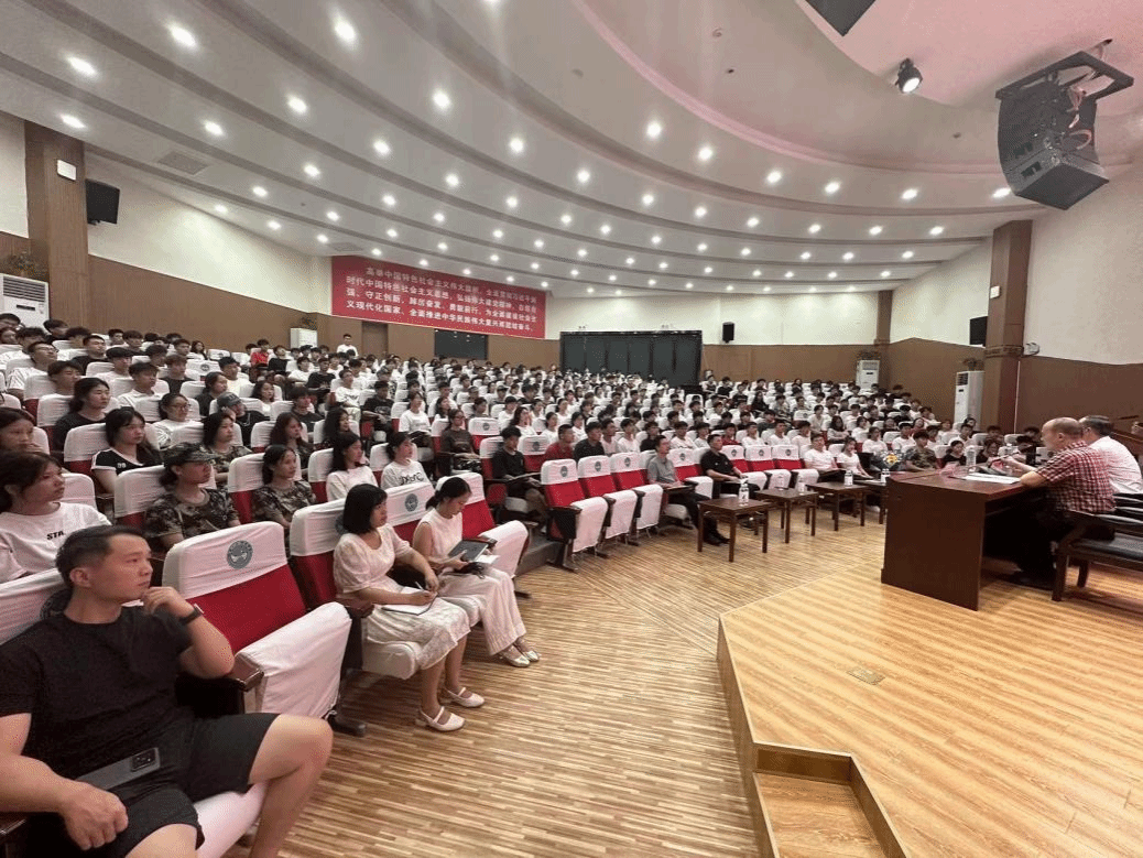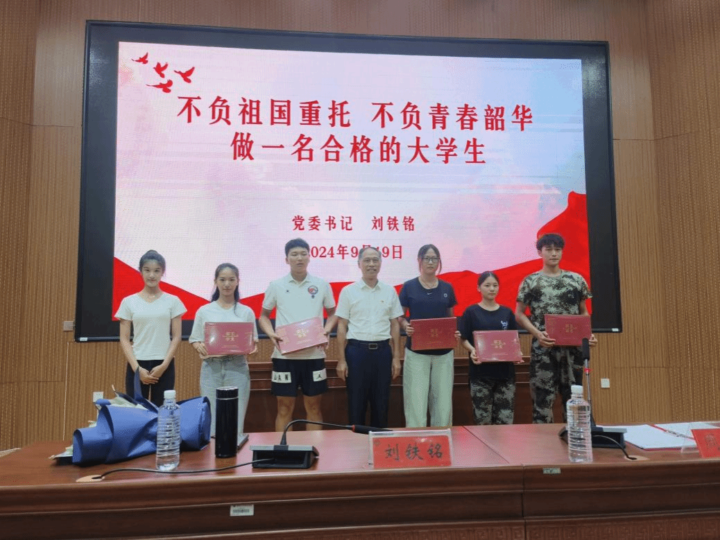 9月19日晚,学校党委书记刘铁铭教授在匠成楼报告厅为体育学院2024级全体新生讲授主题为“不负祖国重托,不负青春韶华,做一名合格的大学生”的开学第一课。讲座由体育学院院长周惠新主持,体育学院全体院领导、辅导员、班主任及2024级新生们一起聆听讲座。
