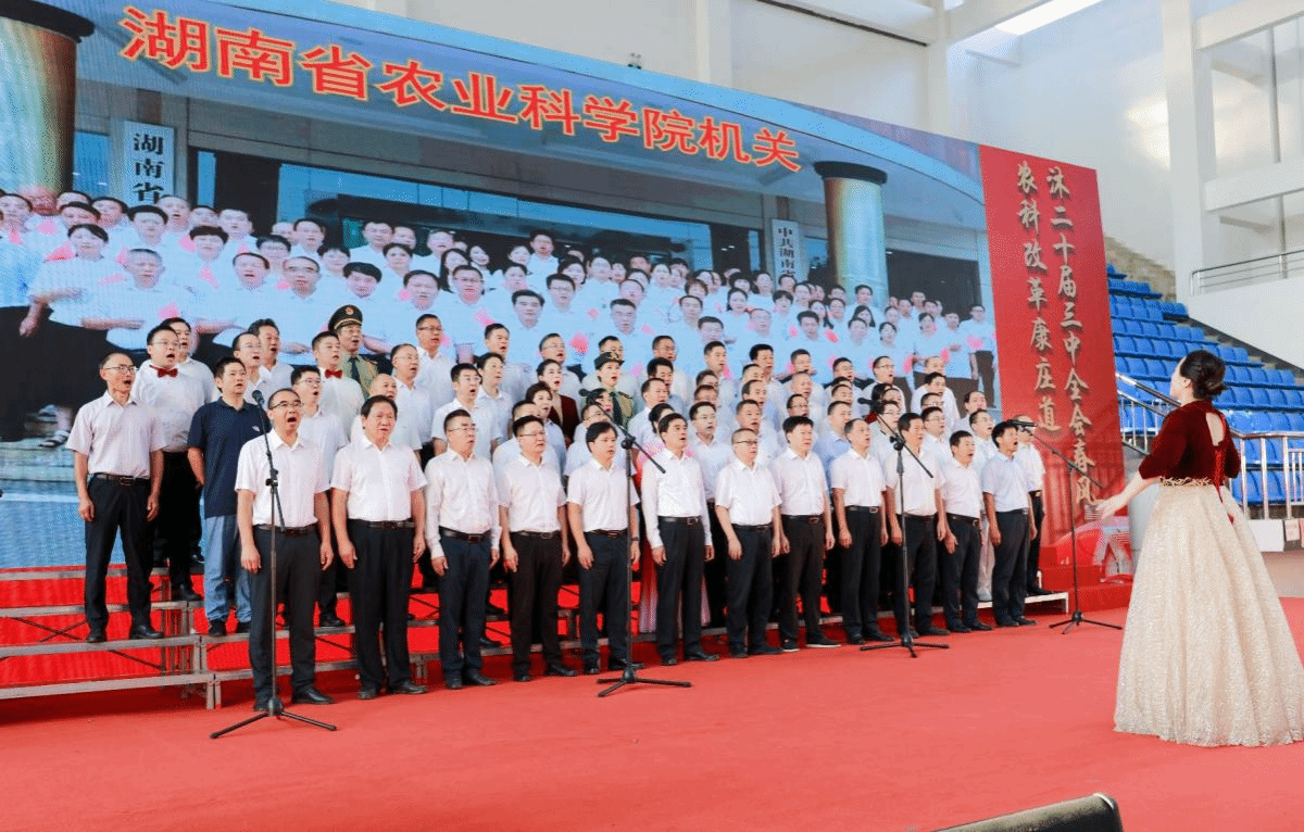 上午,在省农科院活动中心,刘铁铭带领娄底市农科所全体教职员工,与全省农业科研系统干部职工一起,斗志昂扬,激情满怀,同声高歌《义勇军进行曲》。