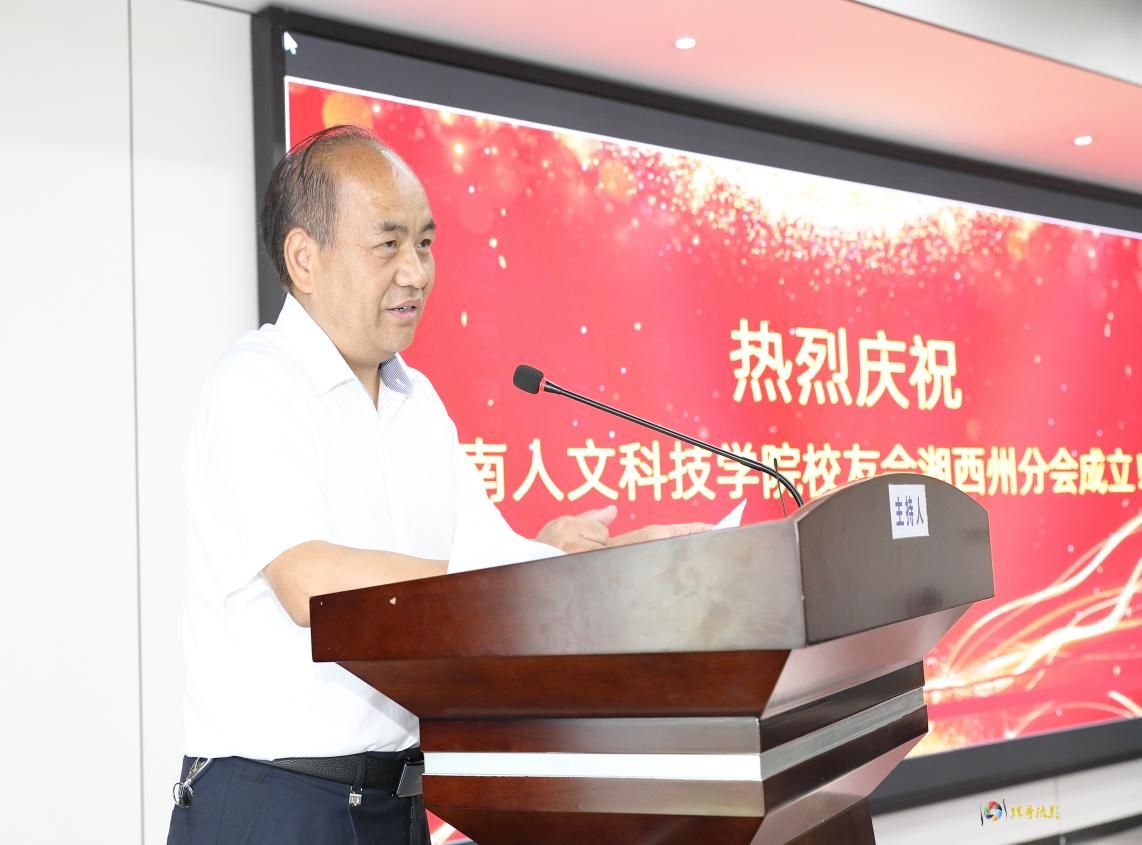 刘铁铭在大会上致辞,他代表学校对湘西州校友会的成立表示热烈祝贺,并向校友们介绍了近年来学校在各方面建设发展取得的主要成就。他表示,湘西州校友分会要秉承和弘扬“谋近以致远,养根而俟实”的校训精神,加强团结,凝聚力量,发挥各自领域的资源优势,关心支持母校发展,将湘西州校友分会打造成校友温暖的港湾、发展的平台、联络的纽带,为湘西州的建设发展做出更大的贡献。