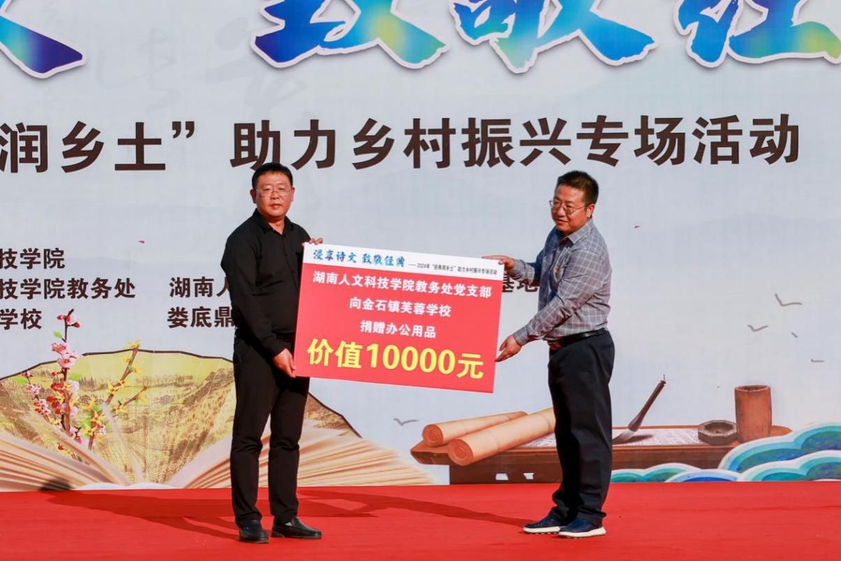 活动在民乐合奏《小满》中拉开序幕。本次活动共为观众呈现了十个节目,节目类型有散文朗诵、诗歌朗诵、民乐合奏、京胡独奏,以及歌曲演唱等,表演者们精彩的演绎令观众深深陶醉,节目间隙的“飞花令”互动环节更是吸引了现场众多同学的参与。活动现场,beat365教务处党支部向金石镇芙蓉学校捐赠价值10000元的办公用品,以实际行动关爱乡村青少年成长,助力乡村振兴。