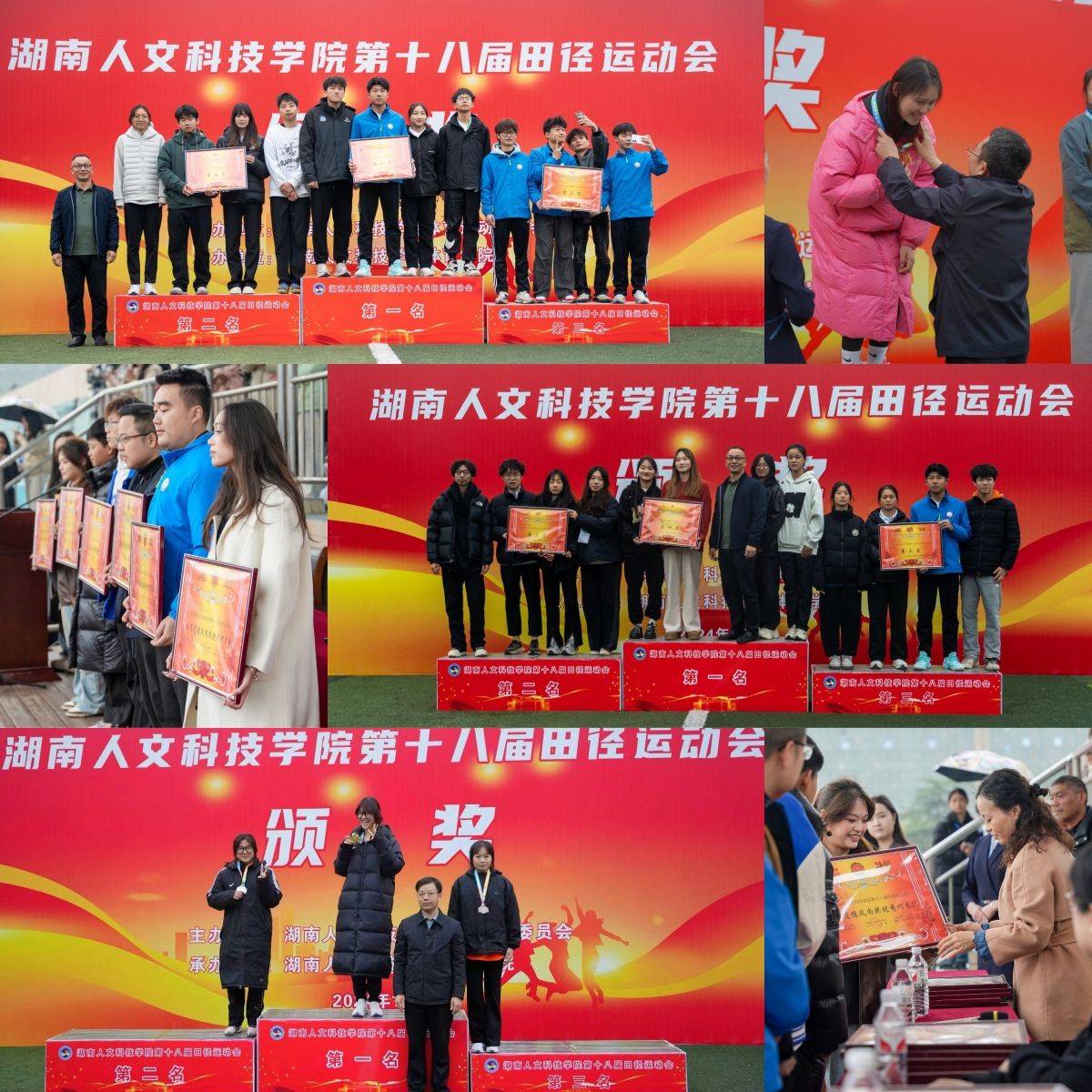 23日上午,运动会圆满闭幕。校学生工作部、武装部部长曹宇,刘佳,体育学院党总支书记曾黎,裁判长梁海雄出席闭幕式并颁奖。经过两天半的激烈角逐,信息学院、能源与机电工程学院、教育学院、农业与生物技术学院、商学院、材料与环境工程学院获甲组团体总分前六名,运训2403、运训2203、体教2301、体教2401、运训2301、体教2302获乙组团体总分前六名。教育学院、材料与环境工程学院、数学与金融学院、能源与机电工程学院、体育学院、外国语学院获“体育道德风尚奖”。