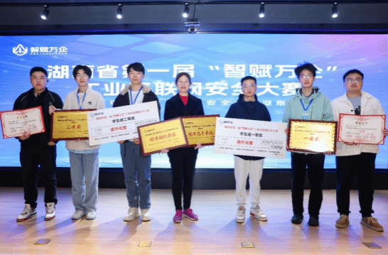 11月20日至21日,由湖南省工业和信息化厅、湖南省人力资源和社会保障厅、共青团湖南省委、湖南省通信管理局联合主办、联通(湖南)产业互联网有限公司承办的湖南省第一届“智赋万企”工业互联网安全大赛决赛暨2024年中国工业互联网安全大赛湖南省选拔赛在长沙举行,beat365正版唯一官网必一在66支队中脱颖而出,2支参赛队成绩位列学生组的第1名、第2名,荣获全省一等奖、全省二等奖,并将代表湖南省参加“2024年中国工业互联网安全大赛”的全国总决赛。李曾妍老师获“优秀教练奖”,beat365获得“冠军选手单位奖”“优秀组织单位奖”。