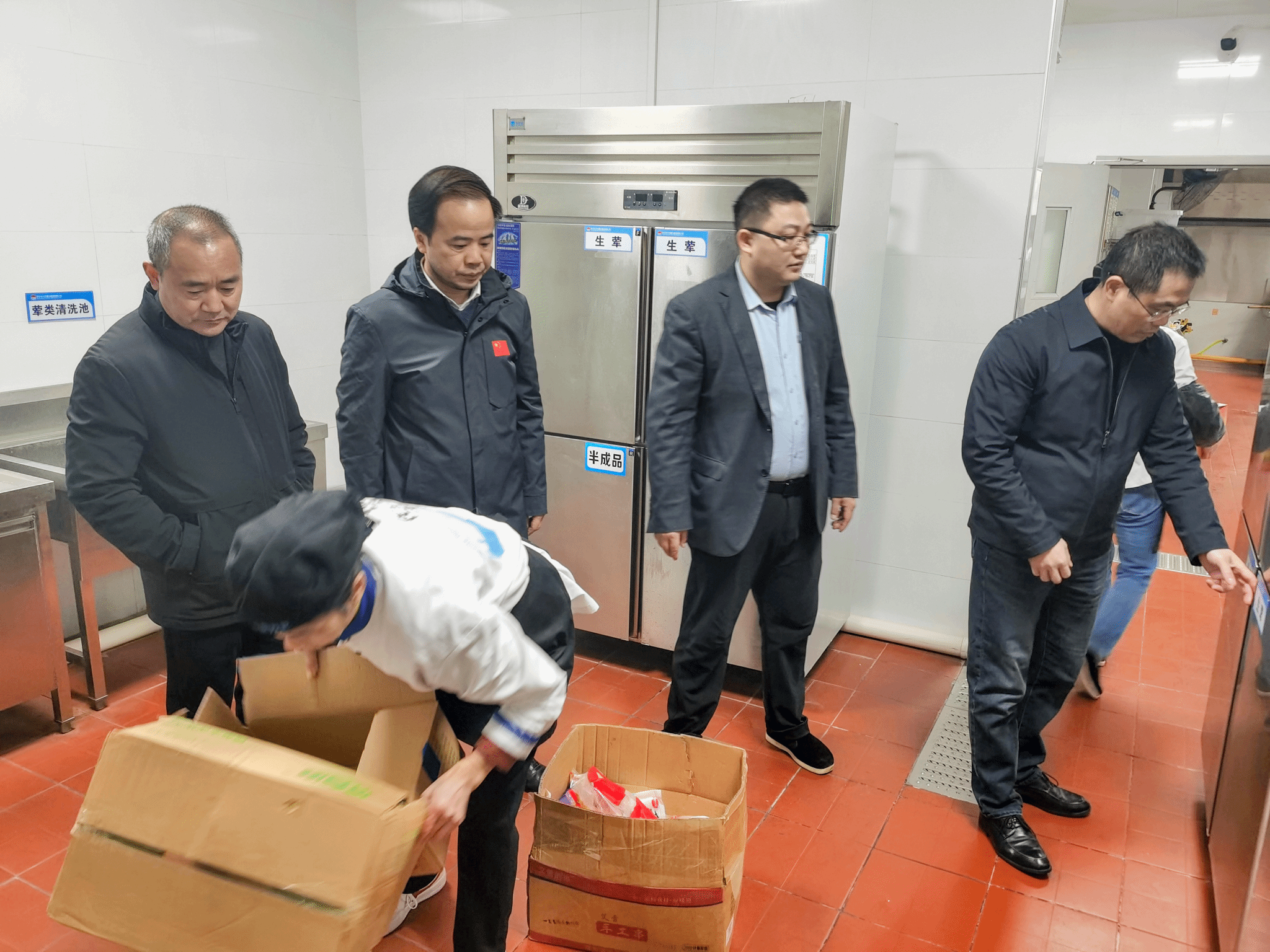 12月12日上午,党委副书记、校长盛明科,党委委员、副校长刘铁峰,党委委员、副校长陈勇一同对学校食堂开展专项突击检查。