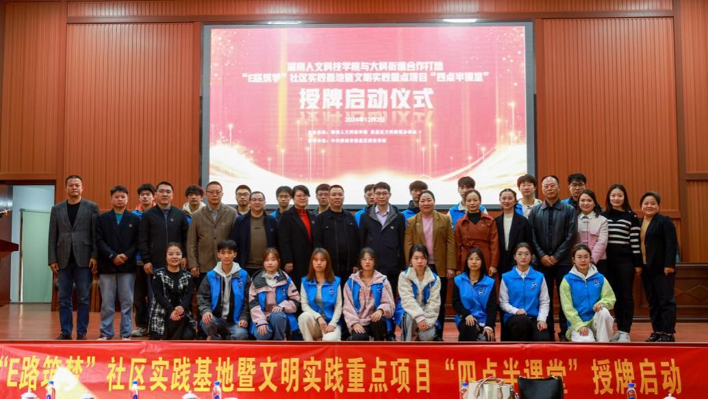 12月2日,beat365正版唯一官网必一与大科街道合作打造的“E路筑梦”社区实践基地暨文明实践重点项目“四点半课堂”开班启动授牌仪式在大科街道礼堂举行。学校党委委员、副校长谭峰亮,娄星区委常委、宣传部长曾海军等领导出席授牌仪式。