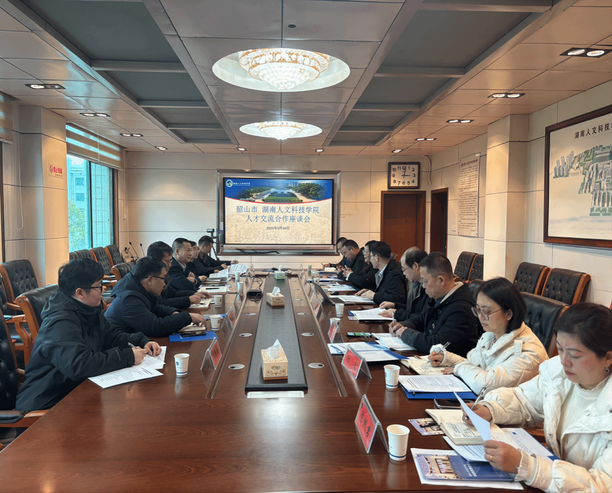 3月10日下午,学校与韶山市人才交流合作座谈会在学校明德楼404会议室举行。韶山市委组织部副部长郭峰,韶山市人力资源和社会保障局党组书记、局长成早阳,校党委委员、副校长谭峰亮出席座谈会。