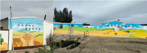 2021年,前往新疆阿克苏绘制民族特色墙绘项目