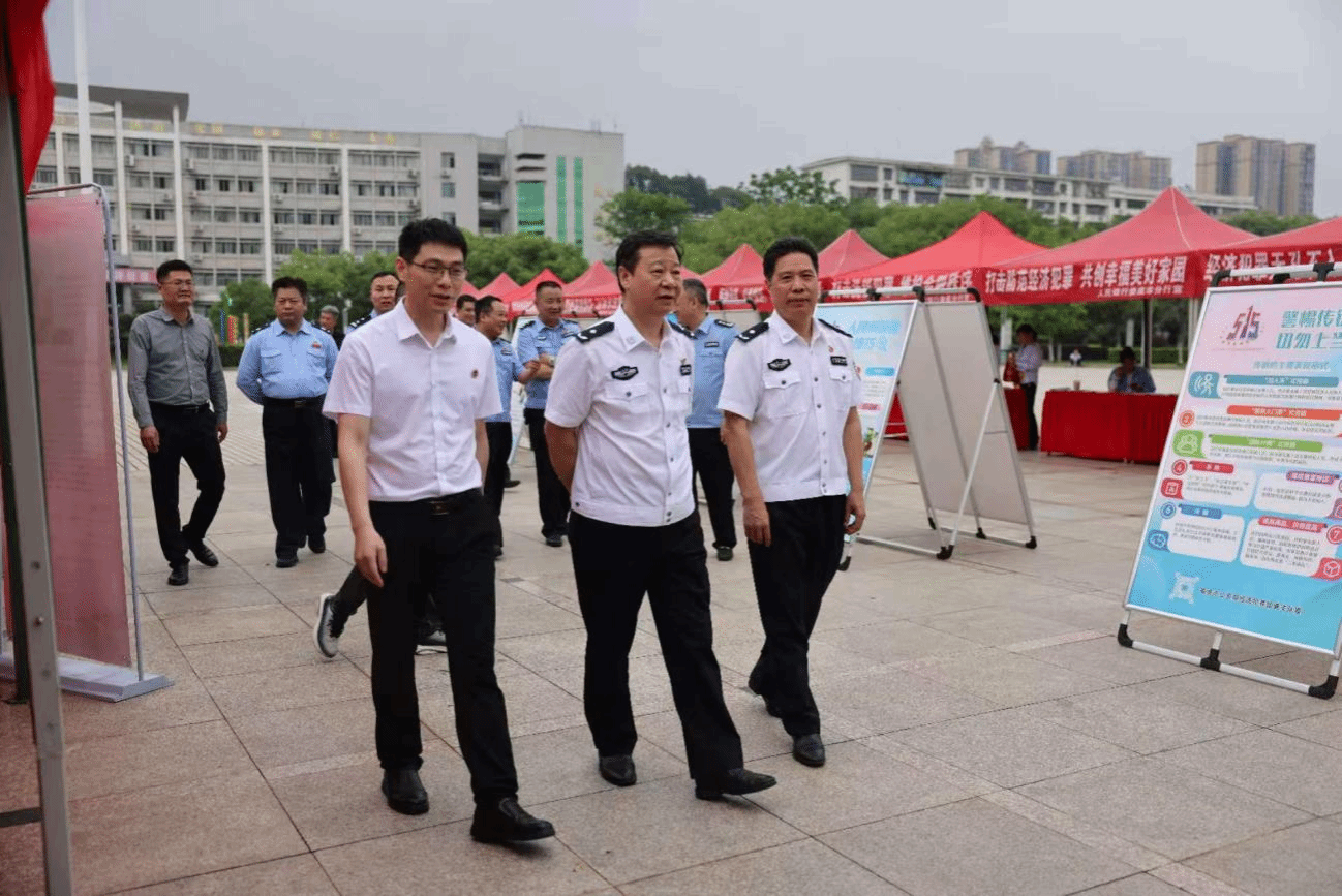 5月15日,在第16个全国打击和防范经济犯罪宣传日之际,娄底市公安局、beat365正版唯一官网必一、各大银行、金融等30余家单位,以“与民同心 为您守护”为主题,在海园广场举行娄底市“5·15”打击和防范经济犯罪主题宣传活动。娄底市公安局党委副书记、副局长卢韶华,beat365党委委员、副校长谭峰亮出席活动并全程参与指导。