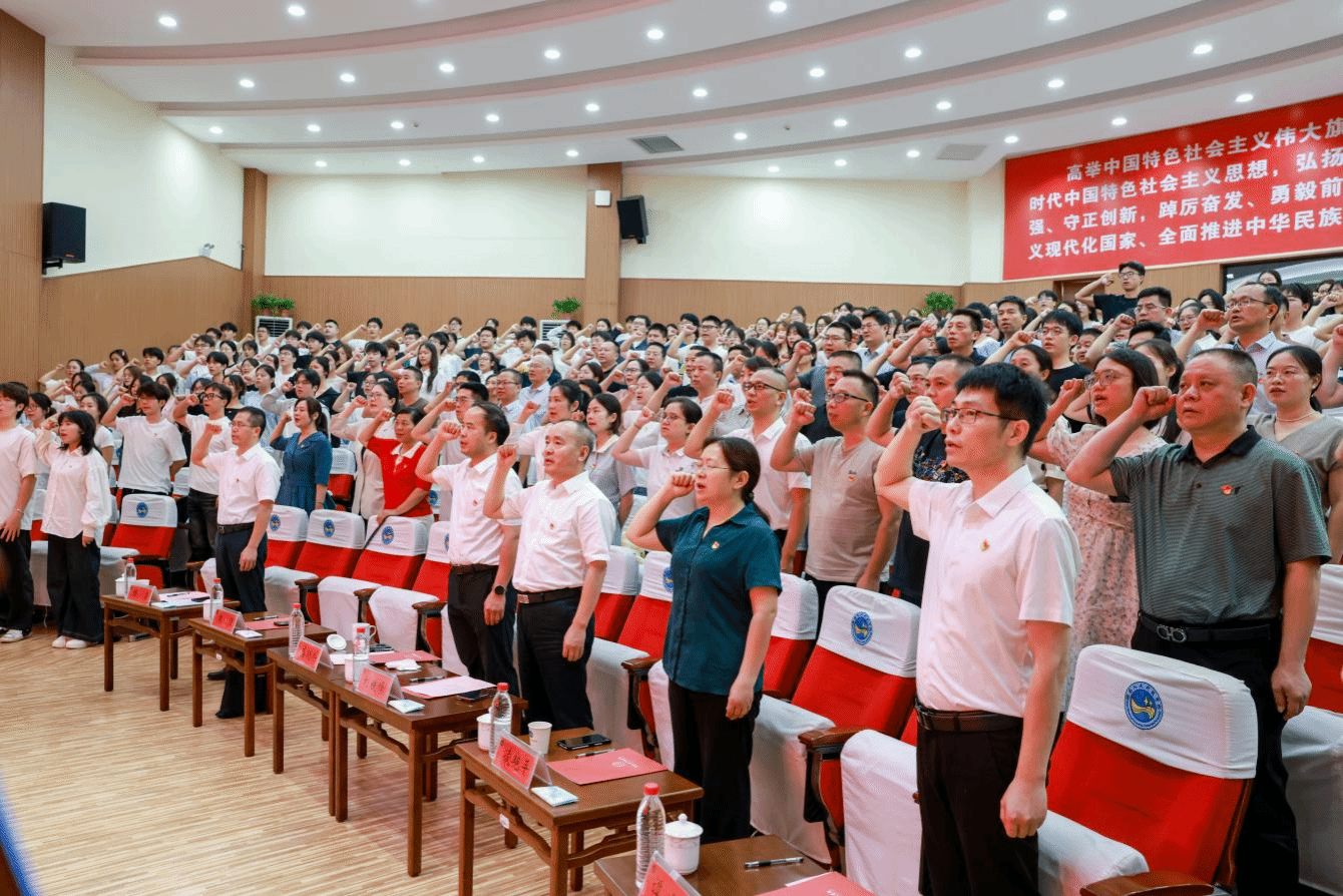 大会举行了2025年党员集体宣誓仪式,朱强领誓,新发展党员入党宣誓、参会党员重温入党誓词。