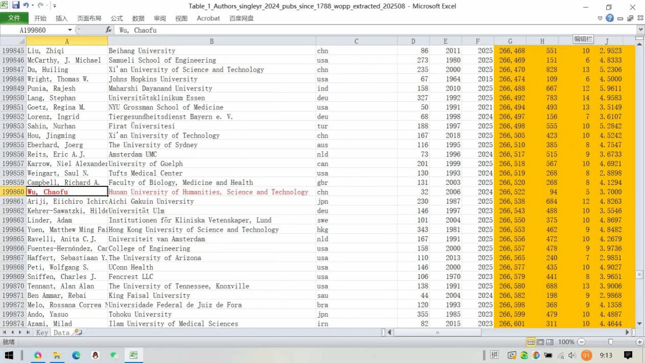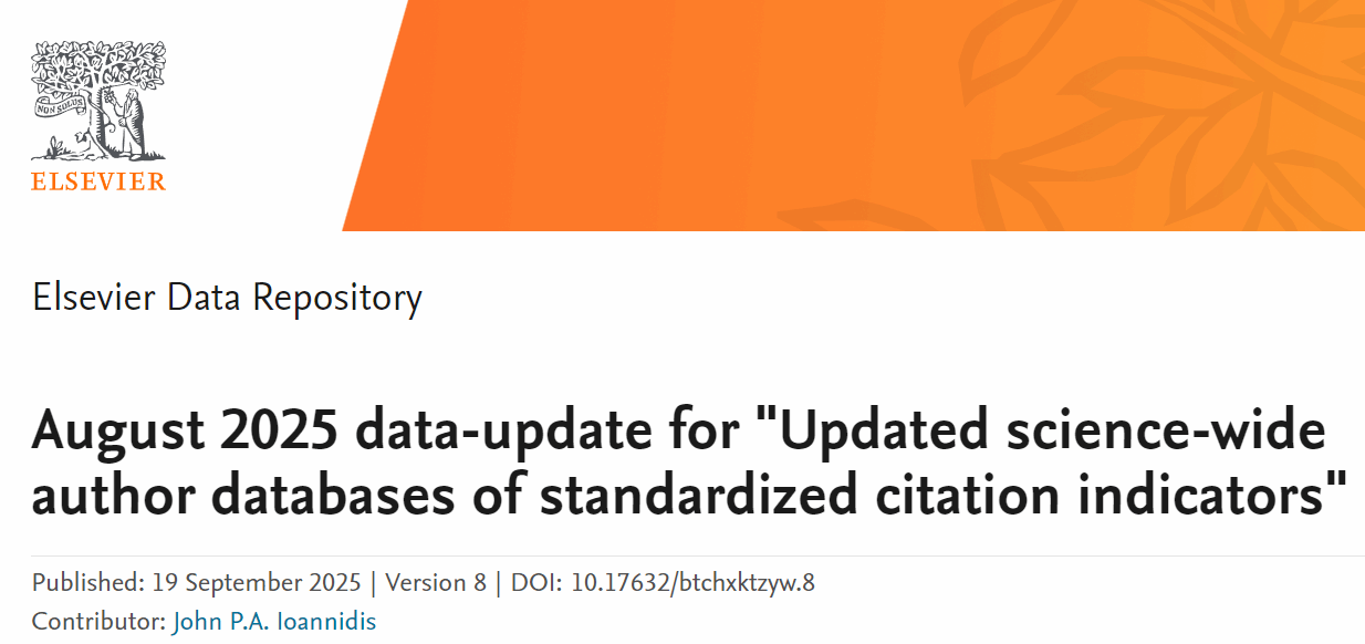 9月19日,斯坦福大学和国际权威学术出版社爱思唯尔(Elsevier)共同发布2025年全球前2%顶尖科学家榜单。该榜单分为“终身科学影响力排行榜”和“年度科学影响力排行榜”两大部分,涵盖22个领域和174个子领域,从全球近700万名科学家中,通过基于其论文引用数、H因子、合著者修正的HM因子、单独或第一作者的文章引用数等综合参数,遴选出世界排名前2%的科学家。