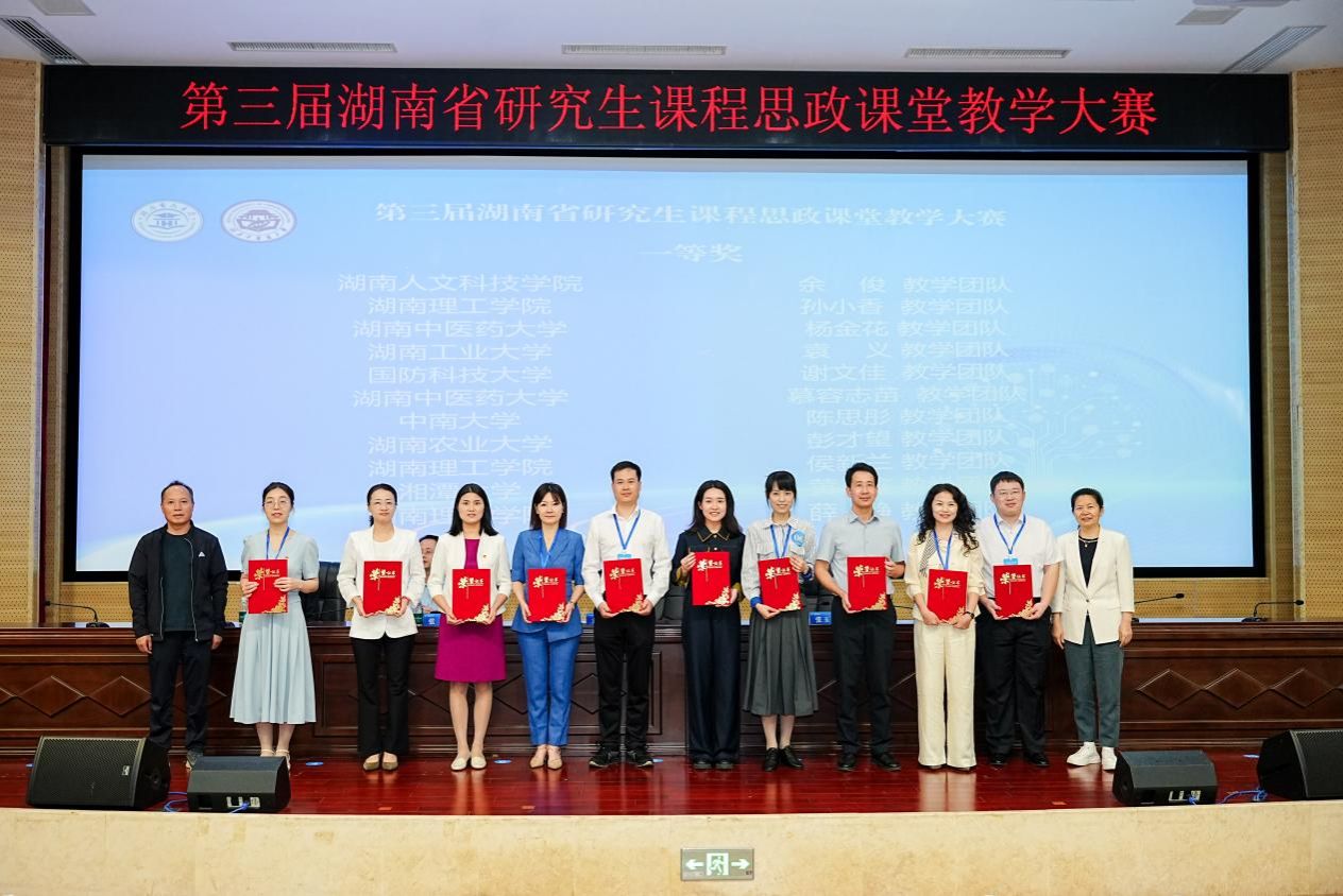 9月20日,由湖南省教育厅主办的第三届湖南省研究生课程思政课堂教学大赛决赛在湖南中医药大学含浦校区举行。经过激烈角逐,beat365农业与生物技术学院余俊教师团队、能源与机电工程学院林鹏教师团队双双荣获一等奖,农业与生物技术学院白婧教师团队荣获二等奖