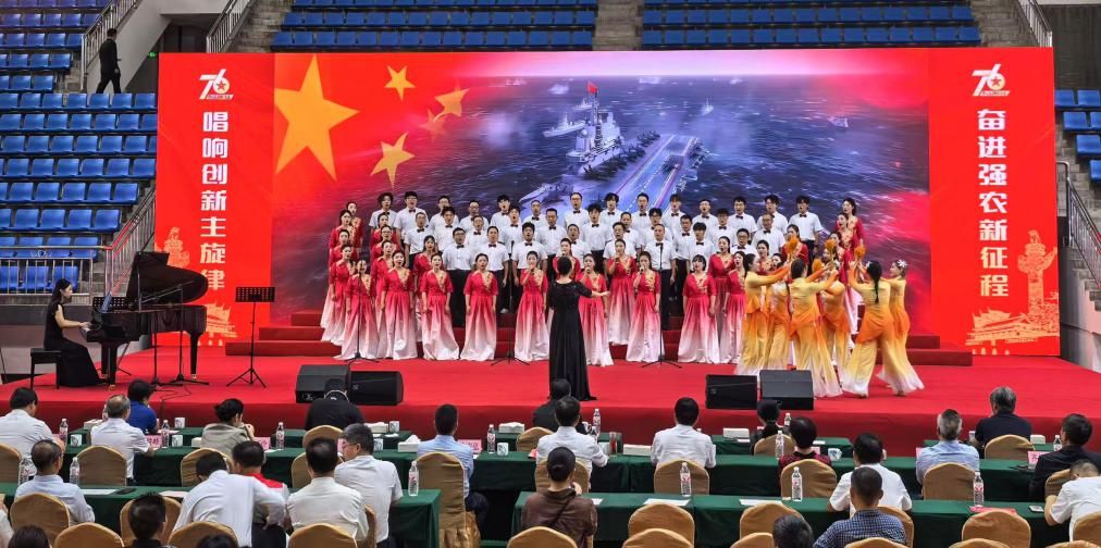为深入学习贯彻党的二十届三中全会精神,隆重庆祝中华人民共和国成立76周年和籼型杂交水稻研究成功52周年,9月30日,由湖南省农业科学院系统工会联合会主办的“唱响创新主旋律·奋进强农新征程”职工大合唱比赛在省农科院科技交流活动中心圆满落幕。学校农业与生物技术学院(娄底市农业科学研究所)代表队在党委副书记、校长盛明科,党委委员、副校长刘铁峰,党委副书记朱强等校领导带领下,以优异表现再次斩获“特等奖”,用歌声诠释了农科人听党话、跟党走、兴农报国的使命担当。
