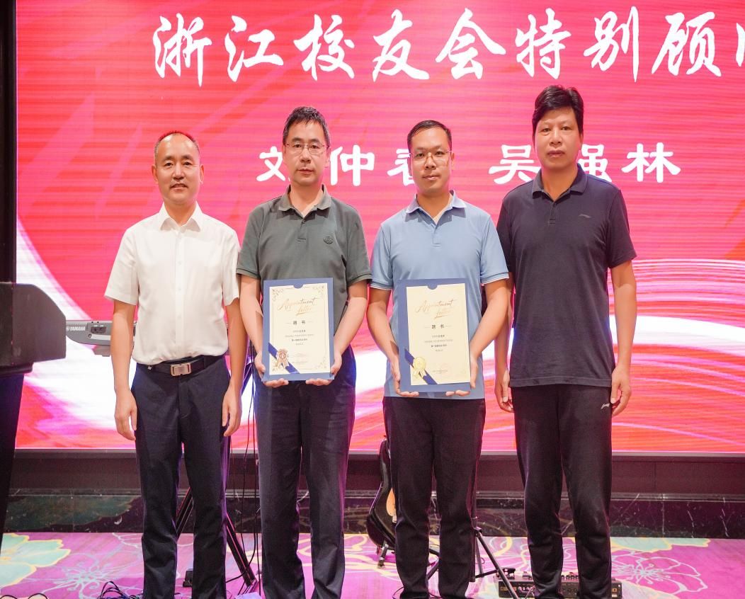 刘铁峰、刘和云分别为浙江校友会会长、副会长、秘书长、副秘书长、特别顾问颁发聘书。
