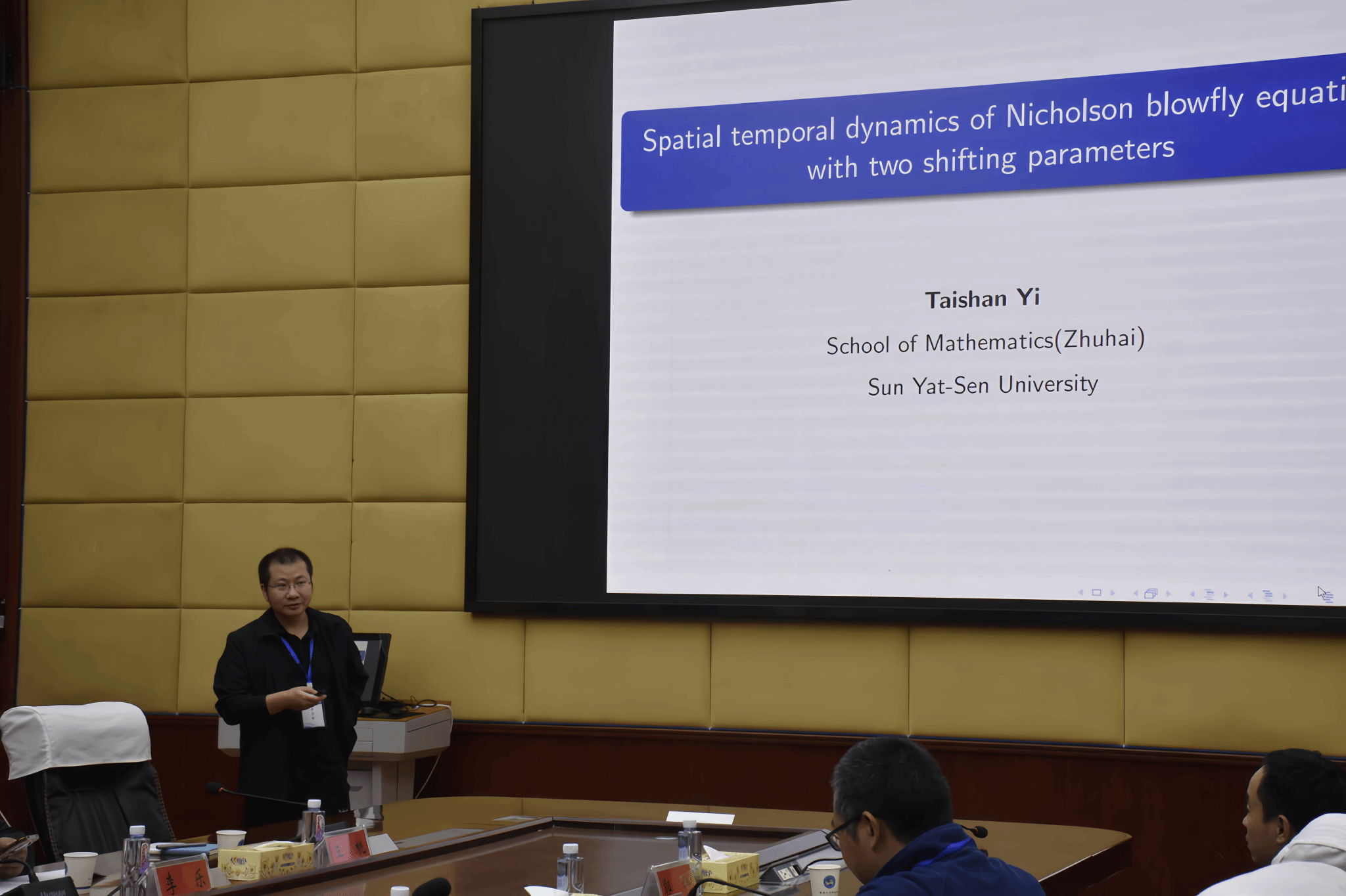 在专题报告环节,易泰山以《Spatial–temporal dynamics of the Nicholson blowfly equation with two shifting parameters》为题,介绍了基于行波映射迭代策略的先验估计框架,并巧妙构造匹配测试函数,系统阐明含双移动参数扩散Nicholson模型在非平凡解情形下的传播速度与渐近传播性质,得出系列全新结论。