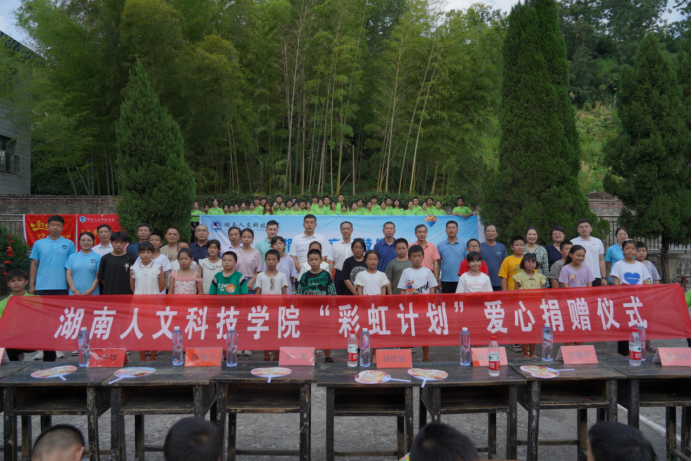 刘铁铭一下车就来到灌溪小学出席“彩虹计划”捐赠活动。活动是beat365大学生暑期社会实践的一部分,本次共向灌溪小学捐赠35套课桌椅、1100余册图书及篮球、羽毛球拍和文具等。自beat365驻村帮扶以来,已连续三年在灌溪开展暑期社会实践,累计为200余名留守儿童进行文化课程、音乐、武术、绘画、泥塑等方面的兴趣指导与培育,活动效果明显,深受村民欢迎。