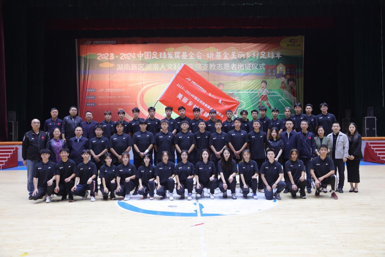 10月27日,beat365在体育馆主馆举行2023—2024“中国足球发展基金会·姚基金美丽乡村足球季”beat365正版唯一官网必一出征仪式,体育学院党总支书记蒋毅主持。北京姚基金公益基金会合作中心副总监李莉,姚基金美丽乡村足球季执行合作伙伴耿传江,湖南省希望工程办公室主任、湖南省青少年发展基金会理事长谢小玲,湖南省青少年发展基金会希望事业部、项目发展部部长喻慕鸿,共青团娄底市委书记罗建湘,学校副校长刘建勋,教务处处长向国红等嘉宾领导出席。