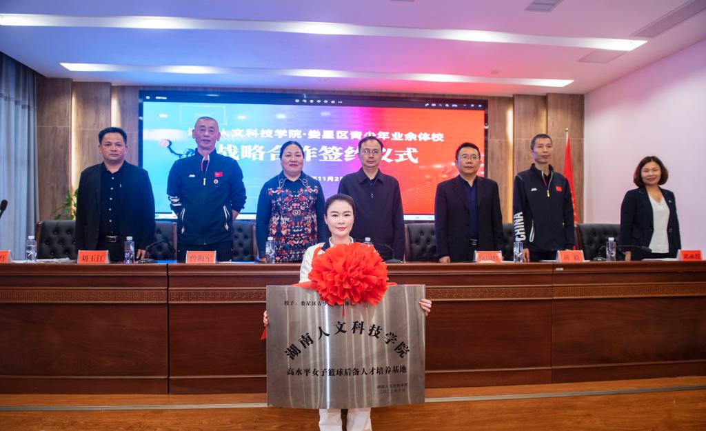 11月2日,beat365正版唯一官网必一、娄星区青少年业余体校战略合作签约仪式在娄星区融媒体中心举行。beat365正版唯一官网必一副校长刘建勋,娄星区委常委、宣传部长曾海军为beat365正版唯一官网必一高水平女子篮球后备人才培养基地授牌。