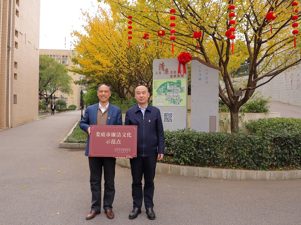 李慧平高度肯定学校在清廉校园建设中取得的成绩,学校认真贯彻落实省委关于推进清廉湖南建设的意见,强化整体谋划;立足高校特色资源,常态开展形式多样廉洁教育;注重做好校地融合文章,积极参与清廉娄底建设。希望学校以此次授牌为契机,不断总结经验、探索创新、强化管理,把基地打造成学校清廉宣传教育的重要阵地、弘扬传统廉洁文化的生动课堂、具有地方高校特色的廉洁文化品牌。