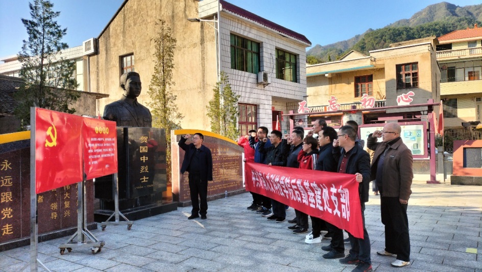 上午,在贺国中故居广场上,全体党员同志面对党旗,右拳攥握,重温入党誓词;铿锵的誓词让全体党员再次接受了心灵的净化和洗礼,进一步坚定了大家入党的初心。同时通过对贺国中革命先烈的了解和追思,深切缅怀革命先烈的丰功伟绩,促进主题党日活动深刻内涵入脑入心。
