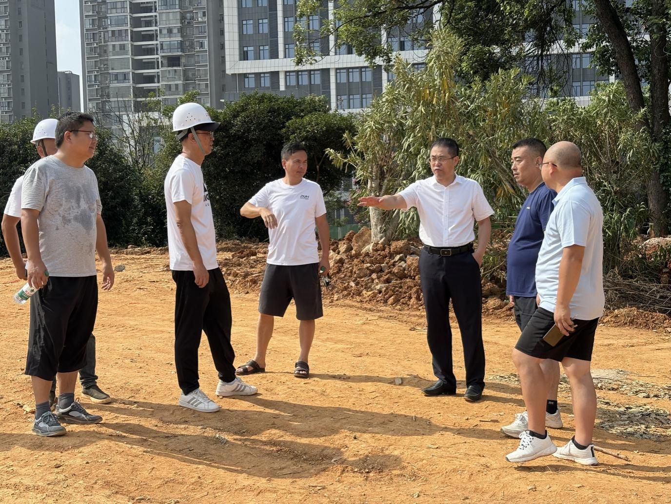 8月11日上午,校党委委员、副校长陈勇一行深入校内各暑期工程项目施工现场开展检查指导。后勤基建处、审计处相关人员参加。