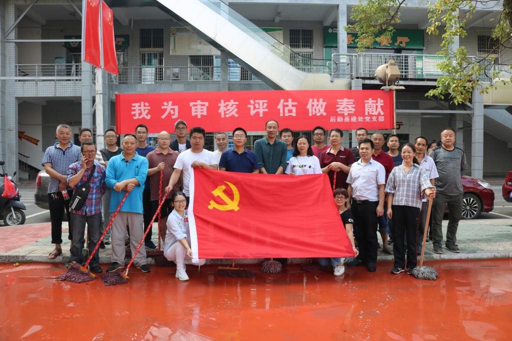 10月11日,后勤基建处党支部在宇光球场开展“不忘初心、牢记使命——我为审核评估做奉献”主题党日活动。后勤基建处支部全体党员和部分教职工参加了此次活动。