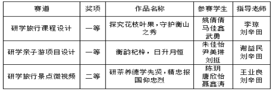 2022年11月27日,湖南省教育厅主办,衡阳师范学院承办,衡阳市南岳区人民政府、华声在线股份有限公司、湖南省华声亲知教育管理有限公司共同协办的第九届湖南省大学生旅游专业综合技能大赛决赛顺利举行。商学院参赛队伍凭借过人的才气和扎实的准备,三支参赛队伍获得两项一等奖,一项二等奖的优异成绩。