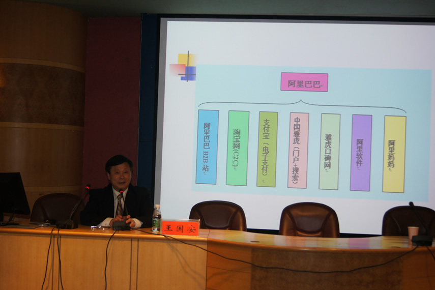 3月29日下午3:00—5:00浙江工商大学王国安教授莅临beat365讲学,在多媒体报告厅成功举行了题为《阿里巴巴的营销策略》的学术讲座。讲座由我系彭分文主任主持。