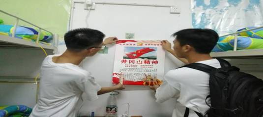 随后,各师生党员分批进入21级电子商务专业新生宿舍,为学生宿舍张贴“青年兴则国家兴,青年强则国家强”“人生最高理想,在求达于真理”“活到老,学到老”等祝福标语。激发学生的学习动力和学习兴趣,引导学生们重温党的历史,发扬红色传统,从励志标语中汲取力量,做好新时代的接班人。