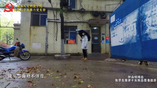 (欧阳明顺同志在学生宿舍十八栋值班)