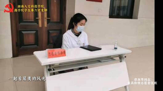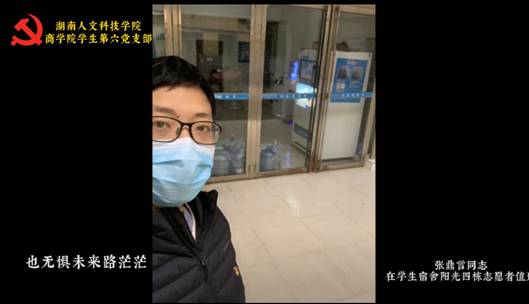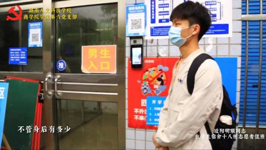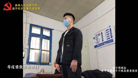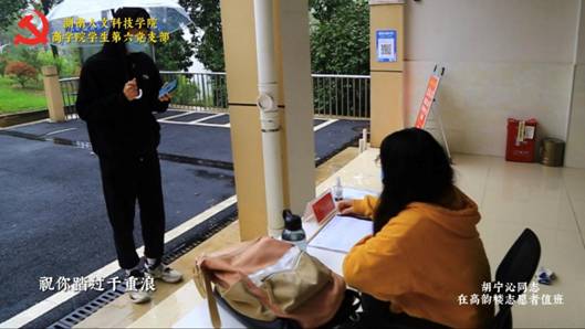 疫情期间,商学院学生第六党支部所有在校党员同志踊跃报名参加学校开展的志愿活动,配合学校、学院开展防疫志愿工作,奋战在学校的防疫一线。