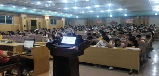 娄底58同城肖文春总经理2019年6月26日晚上7:30在养根楼多功能报告厅为人力资源管理专业学生进行最后一场校企合作教育讲座,就职场人生自我增值展开演讲,出席此次讲座的有人力资源管理教研室主任曾建中及全体人力资源管理专业学生。
