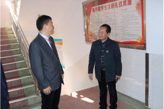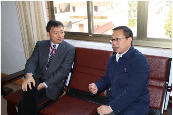 (彭壁玉教授与商学院党总支书记陈功平交流)