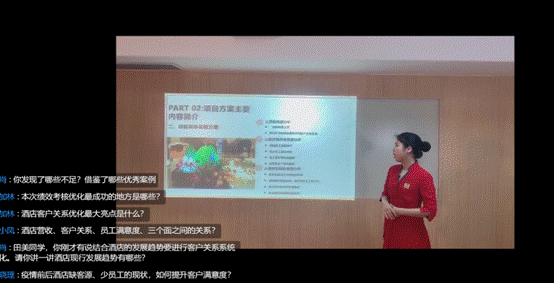 首先由宁波太平洋大酒店总经理周能飞女士致辞,充分肯定了参与毕业设计学生的工作成绩,特别指出学生能根据新冠疫情创新性地提出酒店应对疫情各类设计与方案有益于本酒店管理,并寄语学生应夯实专业知识,结合实践运用,成为酒店业翘楚。紧接着由总经理助理贺晓理先生回顾了历年答辩会,并分享了毕业实习生年度大数据。